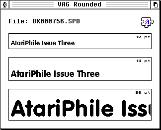 I'm not a Mac user and this isn't a Mac mag so lets get back to the Atari. NVDI in this country has always had a GDOS replacement built in. This, as I've already said, has developed into a full blown SpeedoGDOS replacement which has really come of age in version 4. It supports Speedo and TrueType vector fonts as well as the older bitmap fonts familiar to those of you who've had dealings with GDOS 1.1. The difference between vector and bitmap fonts is well known but for new comers to this area here's a very quick run down.