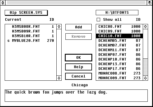 be copied to the font folder called BTFONTS. To stop a font from installing you