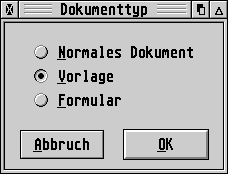 Damit man dieses Dokument aber immer als Vorlage zur Verfügung hat, muß man jetzt noch den Dokumententyp "Vorlage" mittels dem Menüpunkt "Dokument, Dokumententyp..." (Bild 11) einstellen und dann das Dokument im Ordner Vorlagen unter "_NORMBRF.PAP" abspeichern.