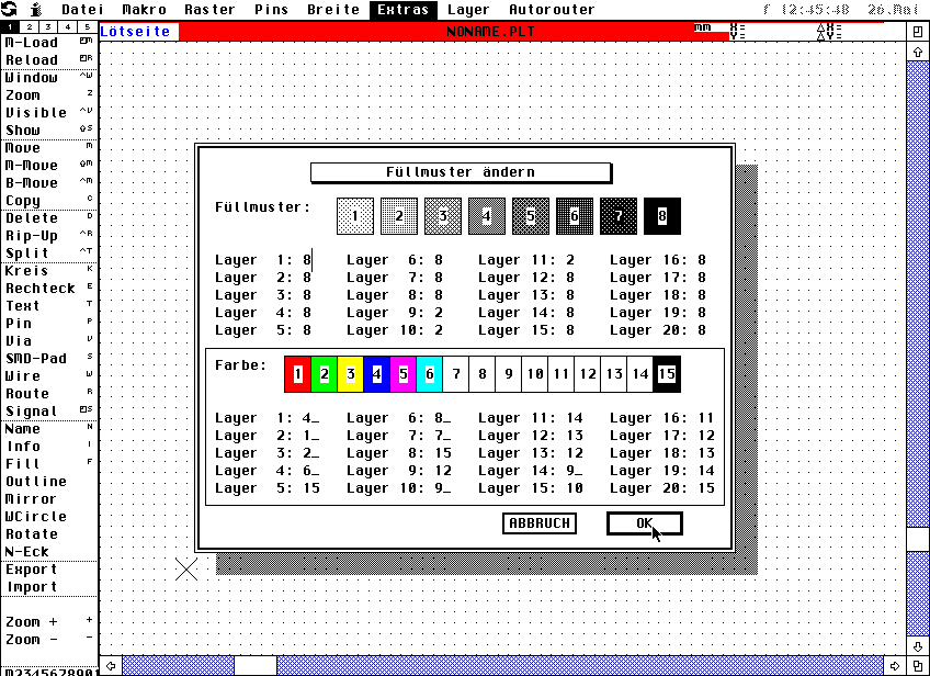 Scooter PCB gibt das Layout immer am oberen Papierrand aus. Somit ist es nicht möglich, zwei Platinen im Europaformat untereinander auf eine DIN A4 Seite zu drucken. Wer sich die Arbeit der Platinenherstellung ersparen möchte, kann auf den Platinenservice des Herstellers zurückgreifen. Dazu braucht man lediglich das Layout abgeben und erhält die fertig durchkontaktierten und mit Lötstopplack versehenen Platinen. Das in einem DINA5-Kunststoffordner gelieferte Handbuch, wird seinen Namen durchaus gerecht. Es ist reichlich bebildert und erklärt mit verständlichen Worten alle Funktionen. Etwas zu kurz kam meiner Meinung nach dabei die Erläuterung der Funktionen, mit denen man die Menüpunkte ändern und erweitern kann. Allerdings sind sie nicht übermäßig kompliziert und im Anhang komplett aufgeführt (mit kurzem Kommentar). Ein wenig probieren hilft, wie in vielen Fällen, auch hier. Auch ein zusätzliches Stichwortverzeichnis wäre schön gewesen. Das Programm GER2MAC vom selben Hersteller (gehört leider nicht zum Lieferumfang) wandelt Gerberdateien in editierbare Makros für Scooter PCB. Somit ist es auf dem Atari möglich, an Platinenlayouts anderer Programme (Gerberausgabe vorausgesetzt) Korrekturen und Änderungen vorzunehmen. Ein Beispiel für die vielfältigen Einstellmöglichkeiten