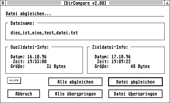 aktiv ist, dann wird beim Feststellen eines Unterschiedes, die Dateiinformationen der unterschiedlichen Dateien angezeigt und man