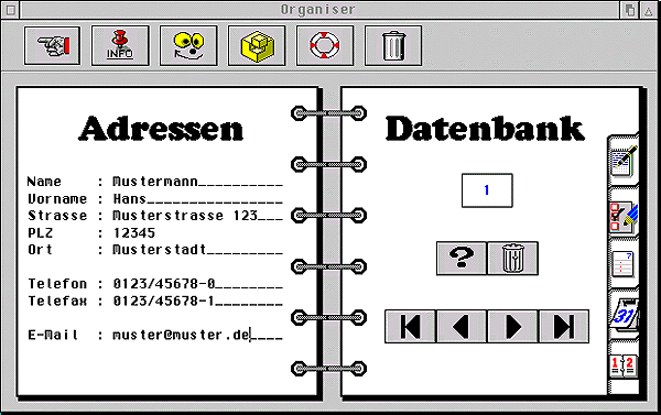 Doch nun zu den eigentlichen Funktionen des Organisers. Ein Klick auf Kartei