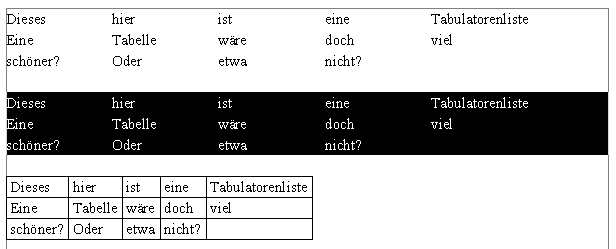 Umwandlung einer Tabulatoren-Liste in eine Tabelle: