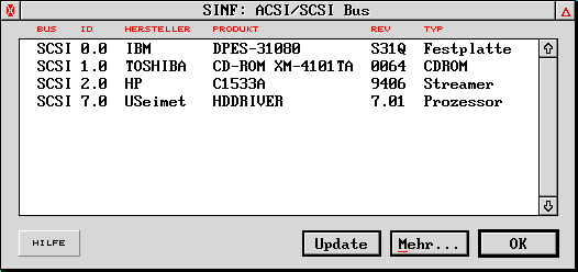 In diesem Fenster werden die angeschlossenen Geräte am ACSI und SCSI Bus