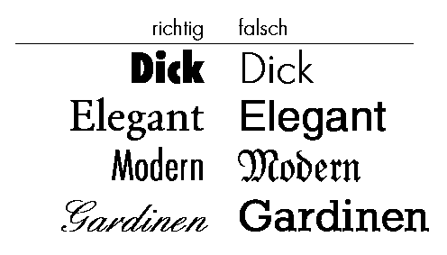 passende und unpassende Schriften einen Überblick zu bekommen,