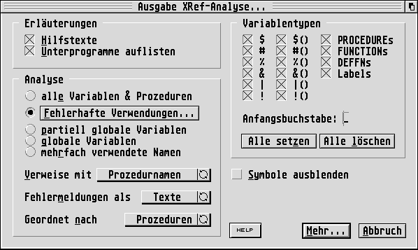 Abb.1: Die Einstellmöglichkeiten der XREF-Analyse
