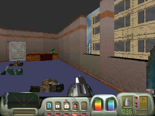 Treppen, Aufzügen und sogar Beamfeldern lassen eine Assoziation mit 'Doom' zu.