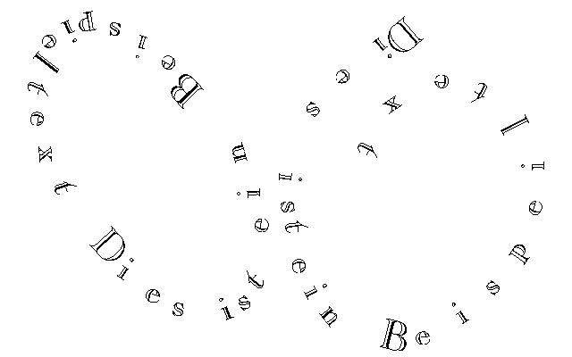 Neben der einfachen Möglichkeit mehrzeilige Texte direkt in die Grafik einzugeben, dort zu editieren, zu verschieben und zu kopieren, bietet Bellini noch eine andere, aber oft vermißte Funktion: Das Schreiben eines Textes entlang einer beliebigen Kurve.