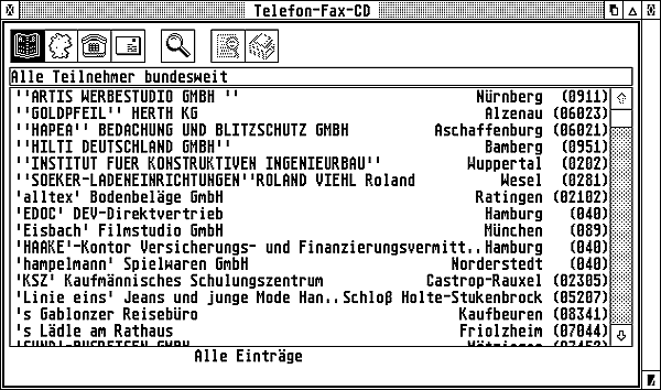 Festplatte dauert die Suche z.B. nach meiner Telefonnummer in alphabetischer Darstellung etwas über 1 Minute. Auf schnelleren Rechner dementsprechend. Wenn man nur 4 MB zur Verfügung hat, dauert die Suche natürlich noch etwas länger.