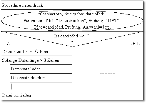 ["Abb.3: Das Unterprogramm "Listendruck" im Nassi-Shneidermann-Struktogramm"]