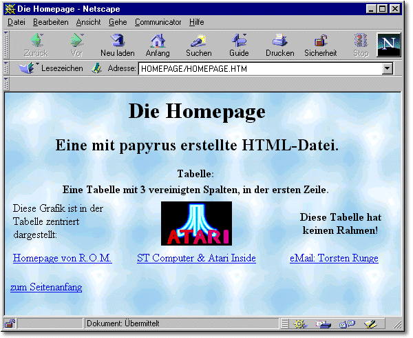 An dem Beispiel kann die unterschiedliche Darstellungsweise der Browser gut erkannt werden und man sieht, daß die Schrift in CAB viel zu dünn ist, um sie vernünftig lesen zu können.